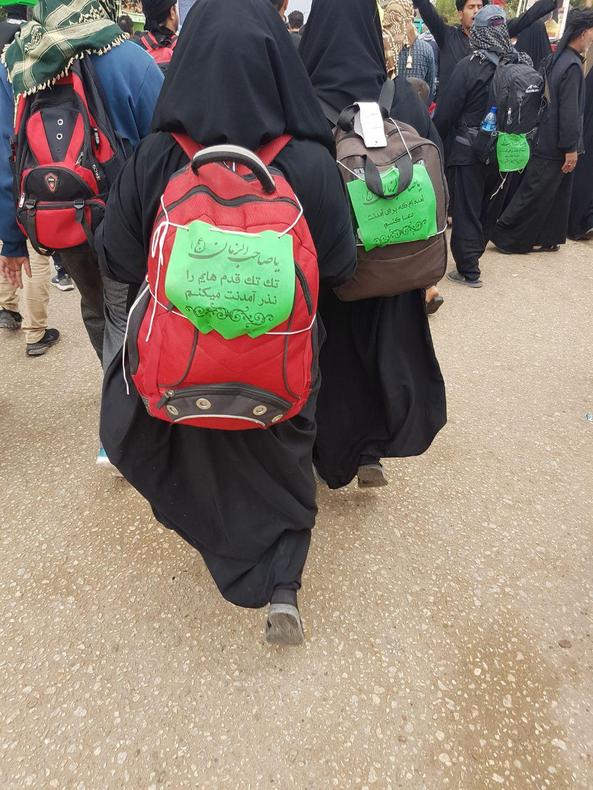 به گزارش خبرنگار اعزامی خبرگزاری بینالمللی قرآن(ایکنا) به عراق، روی کولهپشتیهای زائران اربعین دلنوشتهها و تصاویری دارد که گویای احساس و اعتقادات معنوی آنان است.