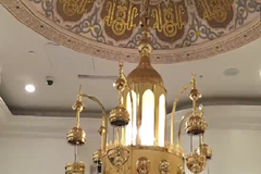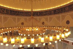 داخل نمازخانه با فرشهای دستباف ابریشمی و پشمی مفروش شده و لوسترهای بزرگ ساخت مصر در سقف نمازخانه به زیبایی میدرخشد.