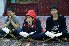 سپس محمد، مهدی، امیررضا، علی و احمد از اعضای نوجوان جلسه به تلاوت سورههای ضحی و انشراح پرداختند و سیاحگرجی با زبان دهه هشتادیها و با صبر و حوصلهای مثالزدنی، نفس به نفس نکات روخوانی و روانخوانی و تجویدی را متذکر شد. در ادامه جلسه قاریان ممتاز، هادی ایزدپناهی، علی یزدیزاده و محسن سیاحگرجی به تلاوت آیاتی از کلام الله مجید پرداختند.