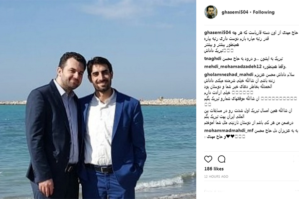 محمدرضا پورزرگری، حمیدرضا احمدیوفا، حبیب صداقت، سعید پرویزی، وحید خزایی، محمد پورعاشوری، محسن قاسمی، طه کبیری، سعید دهقان، یوسف جعفرزاده، امید حسینی نژاد و ... از جمله قاریانی بودند که در شبکههای اجتماعی تلگرام و اینستاگرام، کسب این رتبه را به مهدی غلامنژاد تبریک گفته و برای او در مسابقات پیش رو نیز آرزوی موفقیت کردند.