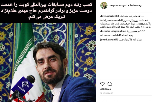 به گزارش ایکنا؛ در پی بدست آوردن رتبه دوم رشته قرائت تحقیق توسط مهدی غلامنژاد در مسابقات بینالمللی قرآن کریم کویت، اساتید و قاریان کشور، کسب این مقام را در شبکههای اجتماعی تبریک گفتند.