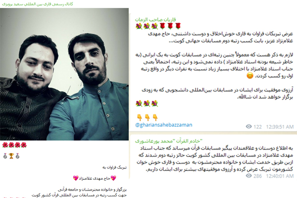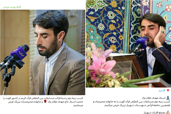 یادآوری میشود که مهدی غلامنژاد، روز گذشته در مراسم اختتامیه مسابقات بینالمللی قرآن کریم کشور کویت، لوح تقدیر مقام دوم رشته قرائت تحقیق را از دستان امیر کویت دریافت کرد.