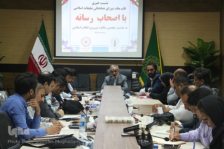 قائم مقام شورای هماهنگی تبلیغات اسلامی کشور در ادامه با امام جمعه و استاندار بوشهر دیدار کرد و سپس در نشست خبری با خبرنگاران رسانههای مکتوب و مجازی که در محل سالن کنفرانس شورای هماهنگی تبلیغات اسلامی بوشهر برگزار شد، حضور یافت و با اظهار اینکه بزرگ نمایی مشکلات و ایجاد زمینه ناامیدی در مردم نسبت به کارآمدی نظام یکی از حربههای روانی ایادی استکبار است، گفت: برگزاری جشن چهلمین سالگرد پیروزی انقلاب اسلامی به منظور خنثی کردن پیچیدهترین توطئههای دشمنان است و در این رابطه کارآمدی نظام دینی نباید زیر سؤال برود و نباید موجب کاهش اعتماد عمومی مردم شود و بزرگداشت چهلمین سال انقلاب در اصل جشن نشاط و امیدواری برآینده نظام است.