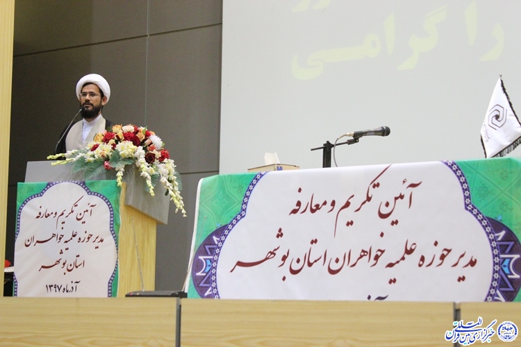 به گزارش کانون خبرنگاران ایکنا، نبأ، آئین تکریم و معارفه مدیر حوزه علمیه خواهران استان بوشهر با حضور طلاب و اساتید حوزوی در محل سالن اجتماعات بانک صادرات استان بوشهر روز گذشته، اول آذرماه برگزار شد.