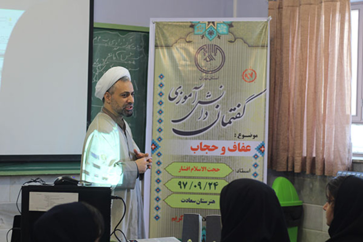 این گفتمان که با حضور معلمان و دانشآموزان دختر این مدرسه برگزار شد، حجتالاسلاموالمسلمین افشار، از اساتید حوزه و دانشگاه، با تبیین وضعیت حجاب و عفاف دختران جوان، دانشآموز و دانشجو، بیان کرد: یکی از فواید و آثار مهم حجاب در بُعد فردی، ایجاد آرامش روانی بین افراد جامعه است، در عین حال بیحجابی و بدحجابی، عفت را خدشهدار کرده و فضا را برای لطمهزدن به حریم خصوصی فراهم و در نتیجه موجب تضعیف نیروی کار افراد جامعه میشود.