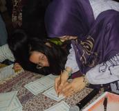 این برنامه با استقبال چشمگیر دانشجویان روبرو شد و هر یک از آنان از روی سر مشقهای از قبل آماده شده با نگارش برخی حروف الفبای فارسی آشنا شدند، سپس نام برخی شرکت کنندگان به قلم تندیس تقوی برای آنان به نگارش درآمد.