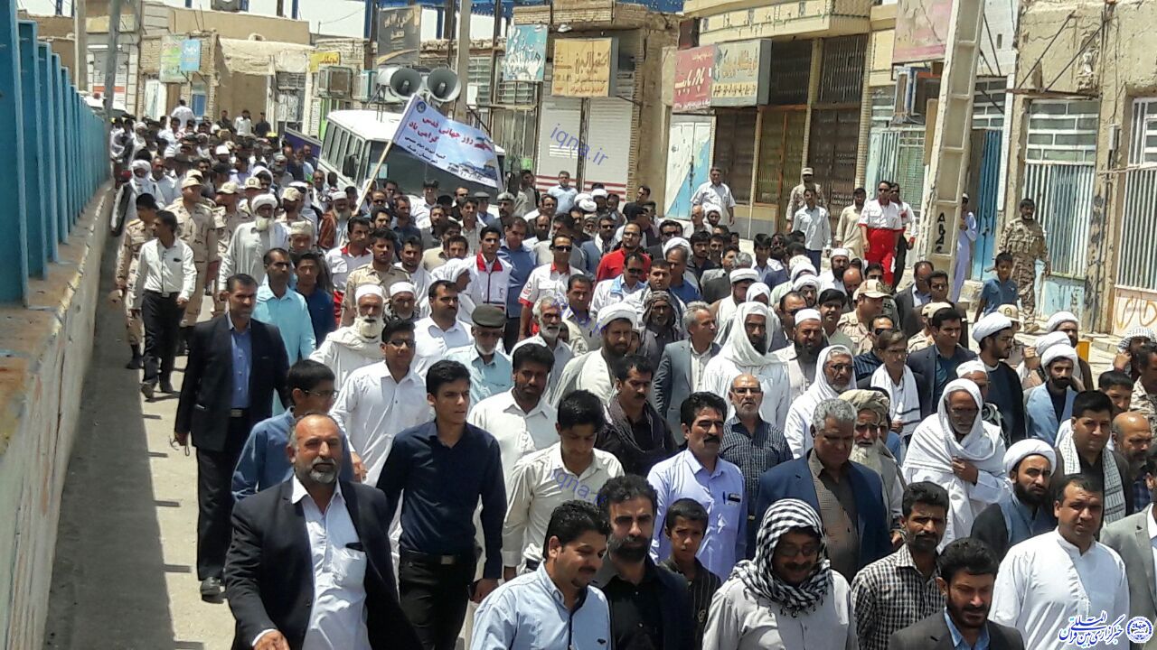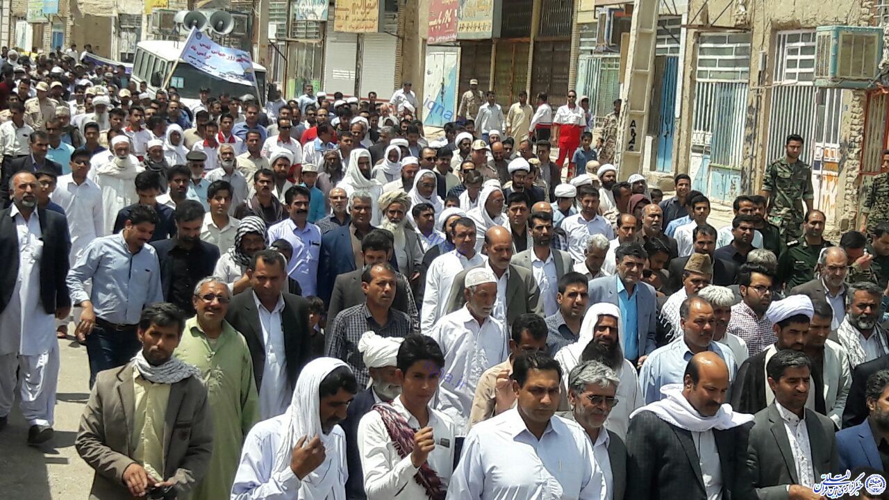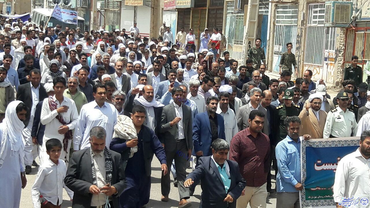 کانون خبرنگاران نبأ ــ مردم مؤمن و انقلابی شهرستان زهک علیرغم هوای گرم این منطقه، همزمان با سایر هموطنانمان در سراسر کشور به صورت متحد و منسجم در راهپیمائی پرشکوه روز جهانی قدس شرکت کرده و فریاد برائت خود را از رژیم غاصب و کودککش اسرائیل سر دادند.