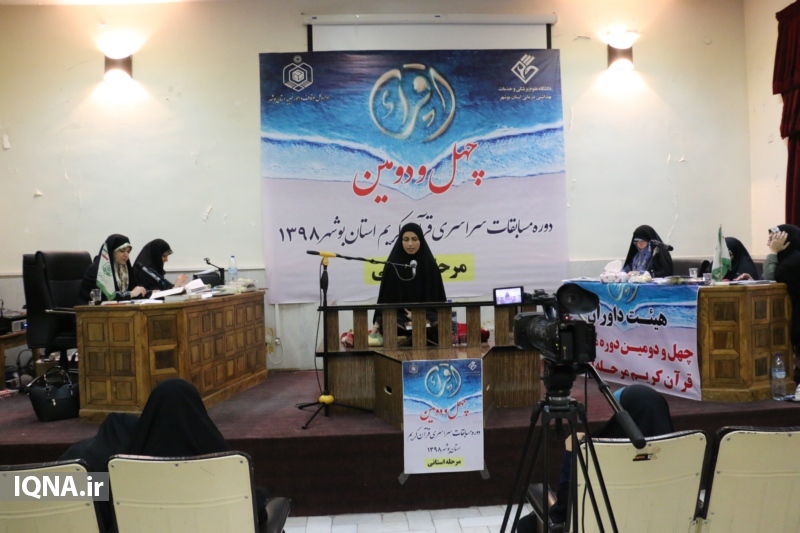عضو شورای فرهنگ عمومی با اعلام این خبر که مرحله مقدماتی کشوری اواخر مردادماه در استان قم و مرحله نهایی کشوری مهرماه امسال به میزبانی استان اصفهان برگزار خواهد شد، بیان کرد: زینب حسینآبادی با امتیاز 62/73 در رشته حفظ کل قرآن کریم، وجیهه درویشی با امتیاز 172/92 در رشته حفظ 20 جزء، سیده زکیه حسینی با امتیاز 184/95 در رشته حفظ 10 جزء، زینب حسینی با امتیاز 169/85 در رشته حفظ 5 جزء، زهرا کشاورز با امتیاز 87/09 در رشته قرائت ترتیل، سیدهشکوفه حسینی با امتیاز 84/35 در رشته قرائت تحقیق، طاهره خیرخواه با امتیاز 84/15 در رشته دعاخوانی به عنوان برگزیدگان بخش خانمها و همچنین محمد انگشتبه با امتیاز 180/15 در رشته حفظ کل قرآن کریم، عبدالکریم گرگین با امتیاز 182/08 در رشته حفظ 20 جزء، محمد عرب با امتیاز 163/35 در رشته حفظ 10 جزء، فضلالله دشتی با امتیاز 155/65 در رشته حفظ 5 جزء، ابوالفضل امینی برازجانی با امتیاز 87/45 در رشته قرائت تحقیق، محمدمهدی انگالیان با امتیاز 88/25 در رشته قرائت ترتیل، سیدمحمدحسن حسینی با امتیاز 85/05 در رشته اذان، محمدعلی هاشمی با امتیاز 79/35 در رشته دعاخوانی به عنوان برگزیدگان چهلودومین دوره مسابقات قرآن اوقاف استان بوشهر معرفی و تجلیل شدند و به رقابتهای مرحله کشوری راه یافتند.