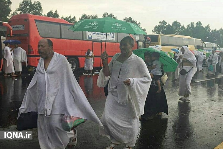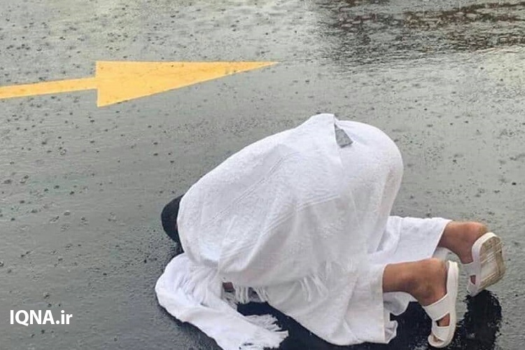 نیایش زائران زیر بارش رحمت الهی به روایت دوربین