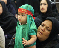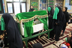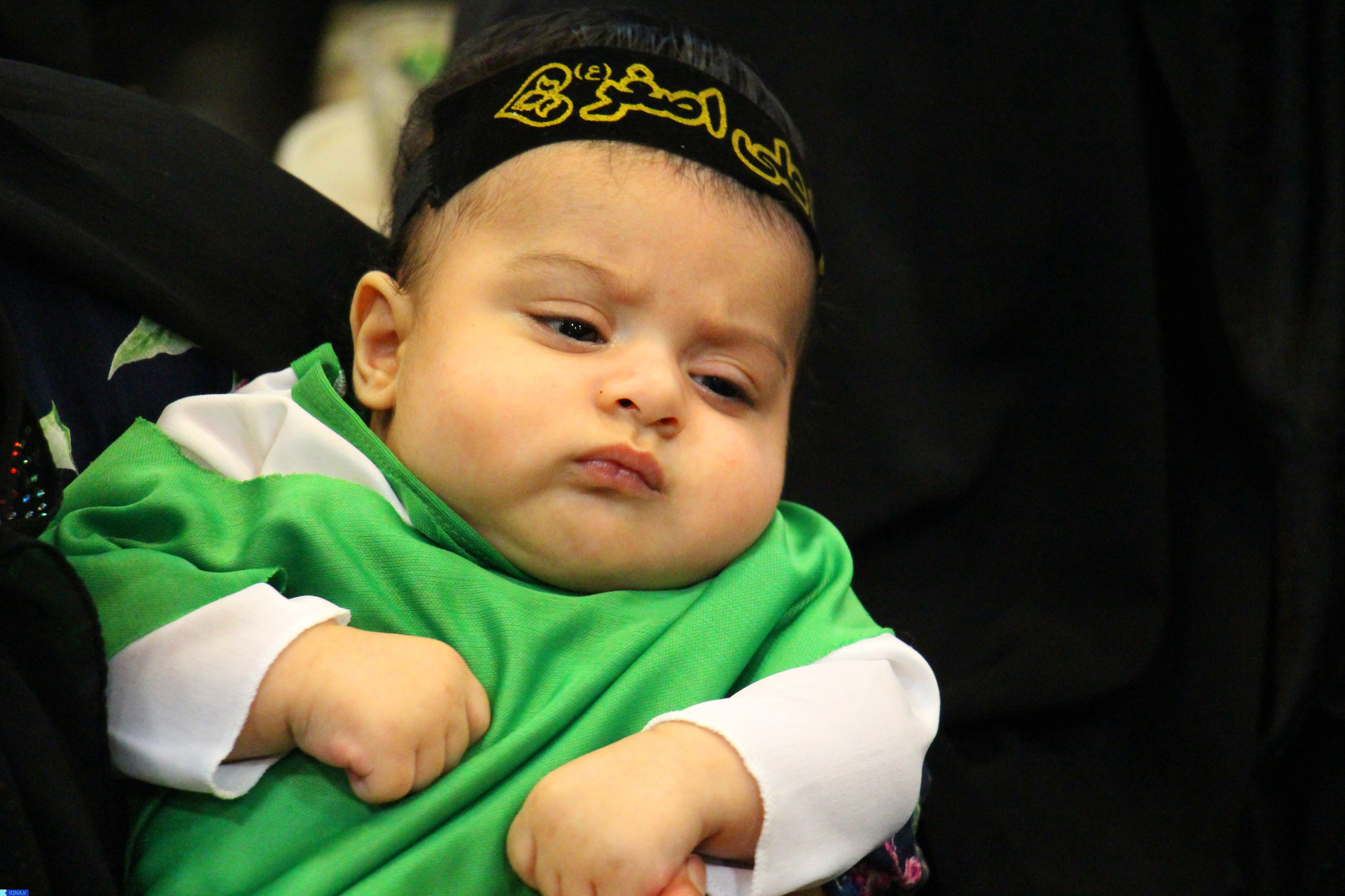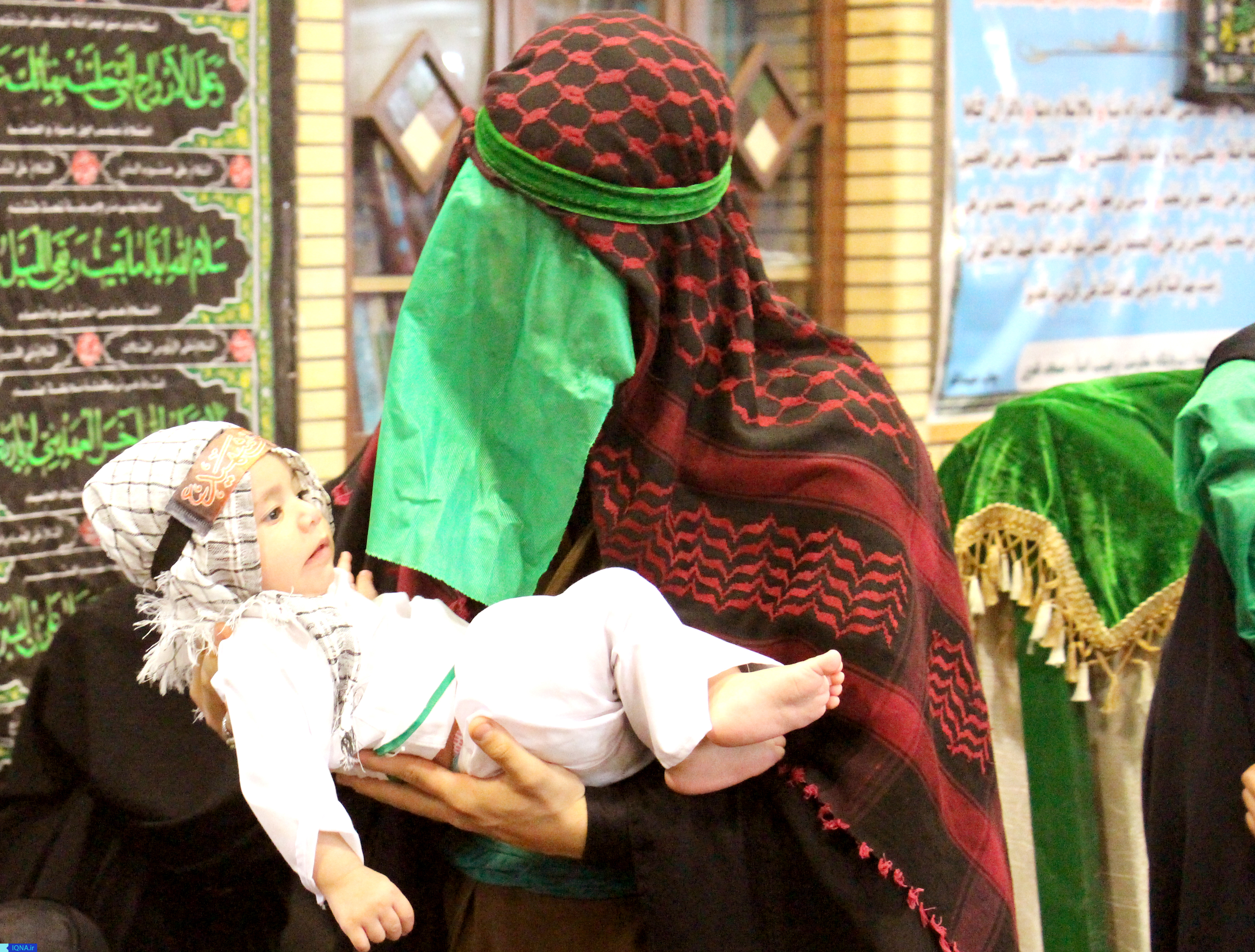 ایکنا، نبا؛ آیین شیرخوارگان حسینی در ششمین روز از ماه محرم همزمان با سراسر کشور امروز جمعه ۱۵ شهریورماه در شهرستان گلوگاه استان مازندران برگزار شد. مادران در همایش شیرخوارگان با گذاشتن کودکان خود بر روی دستها در ماتم حضرت علی اصغر (ع) اشک ریختند. در این آیین باشکوه علاوه بر سخنرانی و مداحی، قسم نامه از سوی مادران حاضر نیز قرائت شد. حضور نوزادان و کودکان با پوششهای سبز و پیشانی بندهایی با مضمون یا حضرت علی اصغر (ع)، حال و هوای خاصی به این محفل داده بود.