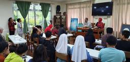 تندیس تقوی، بانوی خوشنویس ایرانی در حال سخنرانی در مدرسه «ادیان شرقی» فیلیپین