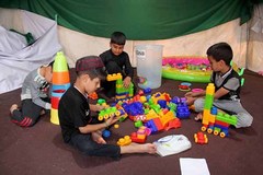 نبأ؛ به همت ادارهکل اوقاف و امور خیریه استان تهران و گروههای جهادی، حسینیه ویژه کودکان ایرانی و عراقی در موکب این ادارهکل در عمود 1217 جهت ایجاد وحدت و همدلی بین کودکان دو کشور برپا شده است.