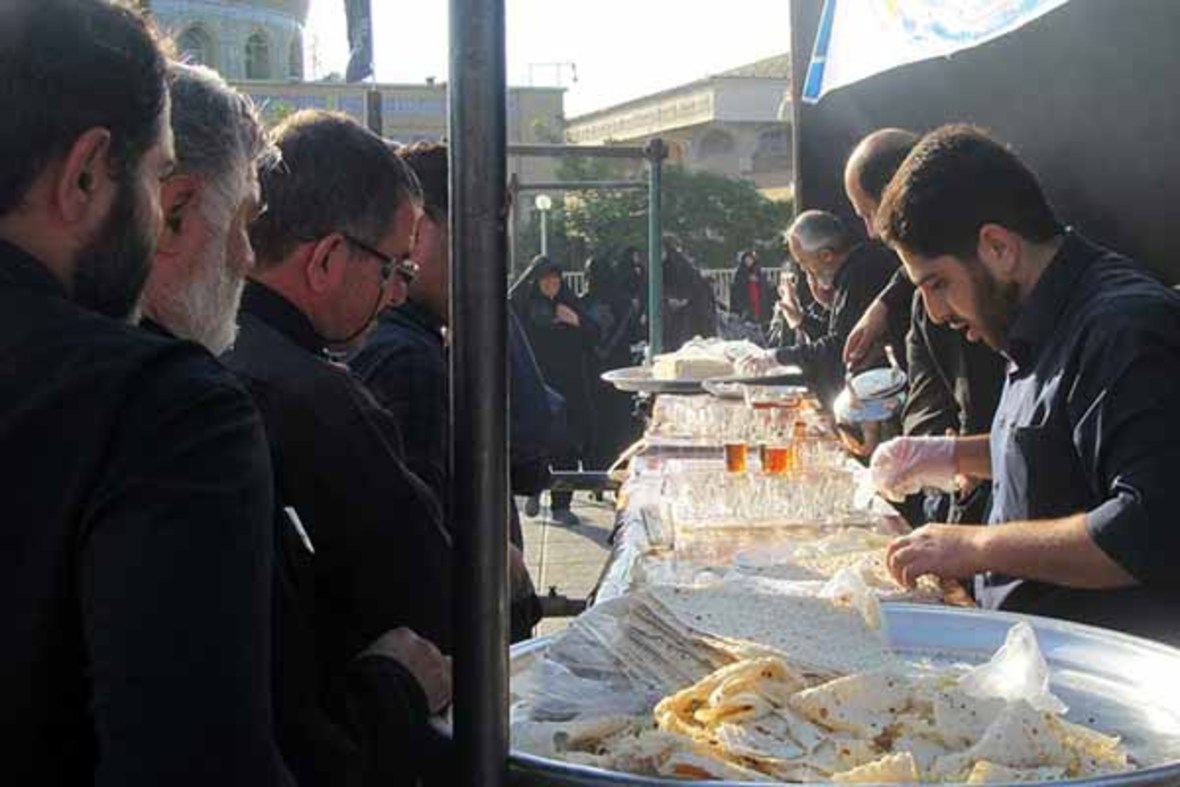 به گزارش کانون خبرنگاران ایکنا، نبأ؛ خادمان حرم کریمه اهل بیت(ع) در ایام حضور کاروان‌های زیارتی اربعین حسینی(ع) در قم، با برپایی ایستگاه صلواتی در صحن جوادالائمه(ع)، علاوه بر توزیع چای، کیک و شربت، در میان زائران صبحانه و شام توزیع می‌کنند.