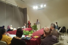 در این مراسم که اعضای انجمن دوستی ایران و فیلیپین و دانشجویان مقطع دکترای مرکز مطالعات آسیایی دانشگاه یو پی حضور داشتند، ابتدا «هنلیتو سیویلیا»، رئیس انجمن دوستی ایران و فیلیپین و استاد روابط بین‌الملل دانشگاه یوپی، ضمن تشکر از همکاری رایزن فرهنگی در طول مدت اقامت خود در مانیل، گفت: فعالیت‌های رایزن فرهنگی در مانیل در طول سال‌های گذشته کم نظیر بوده است، ایشان با همکاری سرکار خانم تندیس تقوی، هنرمند خوشنویس ایرانی توانست نمایشگاه‌های متعددی را در دانشگاه‌های مختلف فیلیپین برگزار کند که این نمایشگاه‌ها گاهی با همکاری انجمن دوستی ایران و فیلیپین برگزار می‌شد.