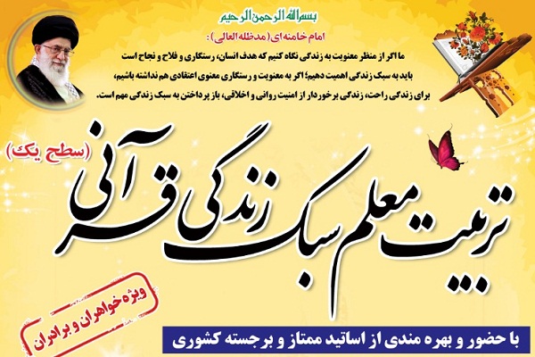 به گزارش ایکنا؛ دوره تربیت مربی سبک زندگی قرآنی(سطح یک) ویژه بانوان و آقایان با حضور اساتید ممتاز و برجسته کشوری، از سوی اتحادیه مؤسسات و تشکلهای فرهنگی ـ مردمی قرآن و عترت استان گلستان و ادارهکل تبلیغات اسلامی استان برگزار میشود.