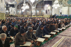 در این مراسم معنوی که 13 دیماه در حرم مطهر رضوی برگزار شد، هادی اسفیدانی، قاری ممتاز و بینالمللی، محمدامین کهن و علیاصغرعلیپور از قاریان ممتاز آیاتی از کلام وحی را تلاوت کردند.