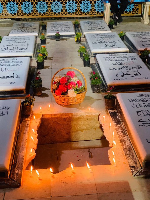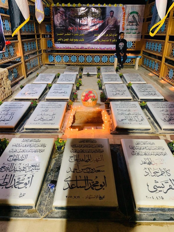 در این مراسم شهروندان عراقی با شعار «الله اکبر/ آمریکا الشیطان الاکبر» و «یا ابومهدی یا قاسم؛ الثأر قادم قادم (ای ابومهدی ای قاسم؛ انتقام نزدیک است نزدیک)» به دستهای بریده حضرت قاسم(ع) سوگند یاد کردند که خون ابومهدی پایمال نخواهد شد.
