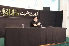 رئیس مرکز اسلامی انگلیس سخنرانی شب اول خود را با یادآوری روایتی از حضرت صاحب الزمان (عج) آغاز کرد که بنابرآن، حضرت حجت (عج) حضرت فاطمه (س) را اسوه و الگوی خود معرفی می کند.