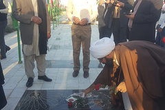 حاضران در این مراسم ضمن نثار شاخه گل و عطرافشانی مزار شهدا و قرائت فاتحه با آرمانهای امام راحل و شهیدان تجدید میثاق کردند.