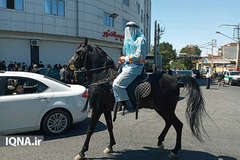 هنر آئینی تعزیه‌خوانی همزمان با ظهر عاشورای حسینی در خیابان‌های شهرستان اسکو از توابع آذربایجان شرقی به اجرا درآمد.