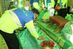 وی ادامه داد: این محفل نورانی باتلاوت حبیب صداقت، قاری و مدرس قرآن آغاز شد و در ادامه نیز محسن شمسآبادی به قرائت دعای توسل و مولودیخوانی پرداخت. سپس مناجاتخوانی توسط امیری، ذاکر اهلبیت(ع) انجام شد و در ادامه غبار روبی ضریح مطهر از سوی مدافعان سلامت انجام شد.