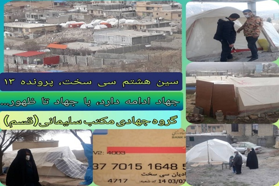 گروه جهادی مکتب سلیمانی یکی از گروههای بسیار فعال در حوزه خدمترسانی به محرومان و آسیبدیدگان از بلایای طبیعی در اقصینقاط کشور است. این گروه جهادی طی چهار سال گذشته توانسته است تا با جمعآوری و هزینه مبلغی در حدود 650 میلیون تومان، گامهای بلندی در زمینه رفع محرومیت از منطق محروم کشور بردارد.