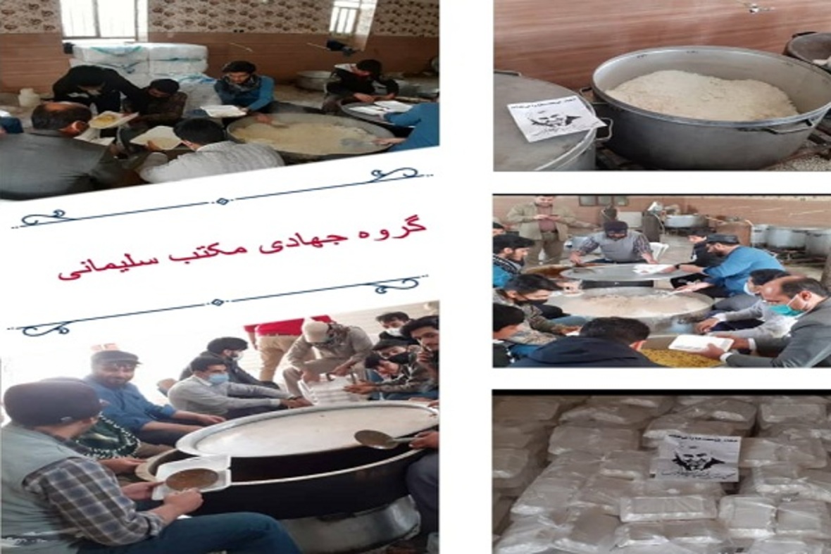 مدیر گروه جهادی مکتب سلیمانی تهران افزود: پخش پنج هزار پرس غذای گرم در روز ولادت حضرت زهرا(س) در منطقه زابل سیستان و بلوچستان که از این تعداد حدود دو هزار و ۷۰۰ پرس غذا از سوی گروه جهادی از کمکهای مردمی جمعآوری شد (به مبلغ ۳۲ میلیون تومان)، تأمین هزینه ذبح قربانی و تهیه دو رأس گوسفند جهت ذبح و پخش گوشت تازه در بین مردم نیازمند روستاهای اطراف زابل (به مبلغ پنج میلیون و ۵۰۰ هزار تومان، تهیه و تأمین کمک هزینه آموزشی جهت تهیه هشت عدد تبلت برای هشت دانشآموز از خانوادههای نیازمندان تحت پوشش (به مبلغ ۲۰ میلیون تومان) و جمعآوری صدقات اول ماه رجب و پرداخت بابت هزینه تعمیر آبگرمکن یکی از خانوادههای تحت پوشش (به مبلغ ۸۰۰ هزار تومان)، بخش دیگری از فعالیتهای گروه جهادی مکتب سلیمانی در سال 99 بود.