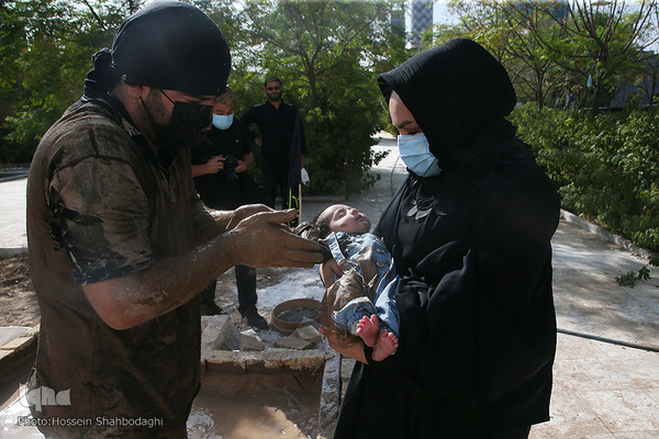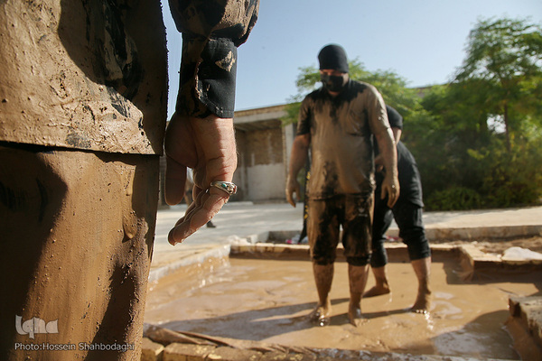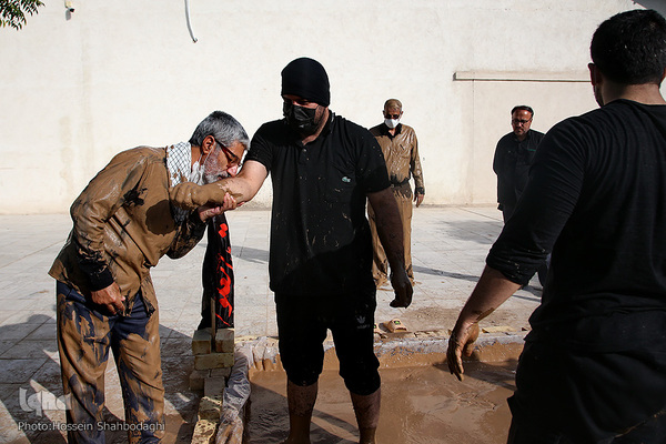 در این رسم دیرینه هر ساله عزاداران و سوگواران امام حسین(ع) بر سر و روی خود گل و خاک میریزند، سپس بر سر و سینه میکوبند.
