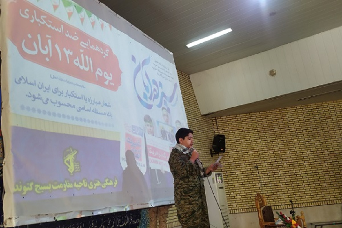 آیین بزرگداشت یوم‌الله ۱۳ آبان با حضور جمعی از مسئولان، دانشجویان، دانش‌آموزان، فرهنگیان، بسیجیان، نیروی‌های نظامی، انتظامی، اقشار مختلف مردم، امروز در مصلی امام خمینی(ره) شهرستان گتوند برگزار شد.