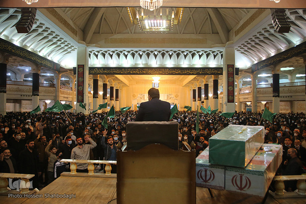 مراسم دومین سالگرد شهادت سردار سلیمانی و همرزمان شهیدش با سخنرانی حجت‌الاسلام والمسلمین پناهیان و شاهچراغی، استاندار قم و مداحی حسن شالبافان و مهدی سلحشور با حضور پیکر سه شهید گمنام و مدافع حرم در حرم حضرت فاطمه معصومه(س) برگزار شد.