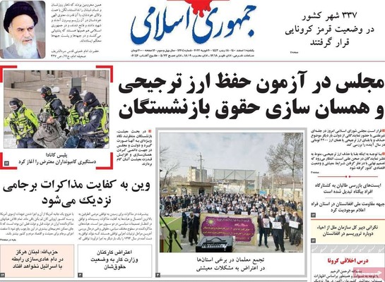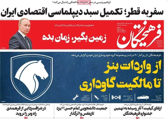 صفحه نخست روزنامههای یکشنبه 1 اسفند ۱۴۰۰