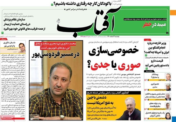 صفحه نخست روزنامههای دوشنبه ۲ اسفند ۱۴۰۰
