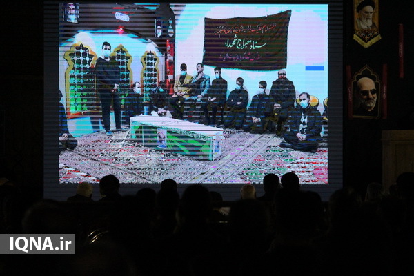 این مراسم با تلاوت قرآن، اجرای سرود ملی، اجرای سرودهای حماسی از سوی گروه سپاه حضرت محمد رسولالله(ص) تهران بزرگ، پخش فیلم تشیع و طواف پیکر شهید در حرم حضرت زینب کبری و حضرت رقیه(س)، پخش کلیپ، مداحی و ادای احترام به پنج شهید گمنام مسجدجامع امام حسن مجتبی(ع) همراه بود.