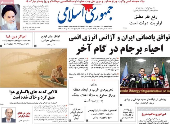 صفحه نخست روزنامه‌های صبح امروز یکشنبه 15 اسفند ماه ۱۴۰۰ را در ادامه مشاهده می‌کنید.