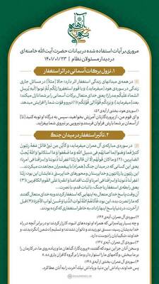 مقام معظم رهبری در دیدار با مسئولان نظام که در تاریخ 23 فروردین ماه 1401 انجام شد، در ضمن بیان نکات و توصیههایی به کارگزاران نظام، به آیاتی از سورههای هود، آل عمران، انعام، انبیاء، فاطر، توبه، یوسف و بقره استناد کردند که این آیات و بیانات رهبر انقلاب دربارهی آنها در جدول ارائه شده مرور میشود.