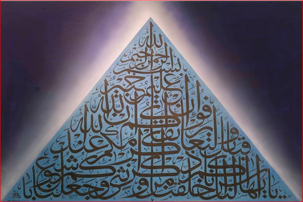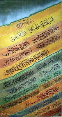 خوشنویسی آیات قرآن بر تابلوی «صحرای سرخ»