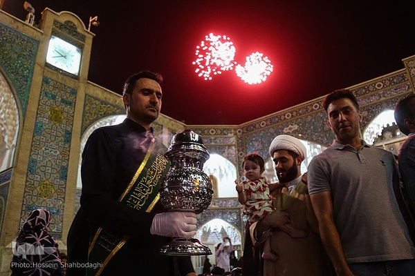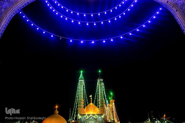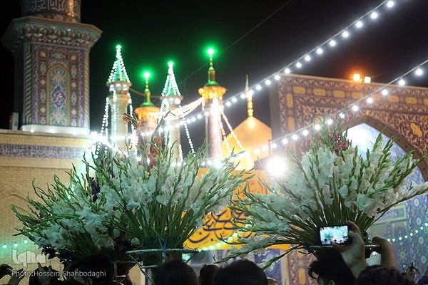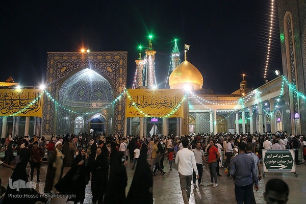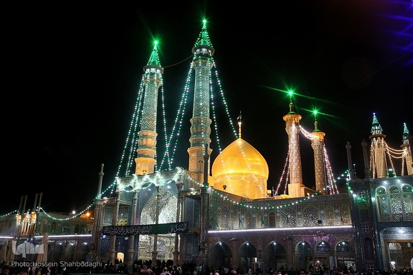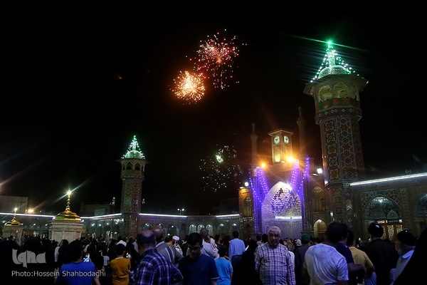 حرم بانوی کریمه اهل‌بیت(س) در شب میلاد با سعادت هشتمین اختر تابناک آسمان امامت و ولایت، حضرت امام رضا(ع) غرق در جشن و نور و سرور است.