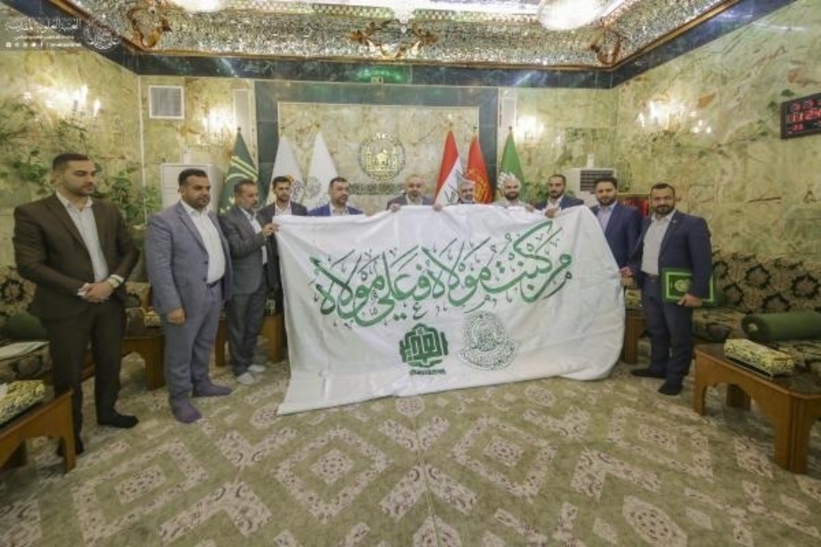 تولیت آستان مقدس عباسی پرچم عید غدیر خم که عبارت «من کنت مولاه فهذا علی مولاه» بر روی آن نقش بسته بود، از هیئت آستان قدس علوی تحویل گرفت.