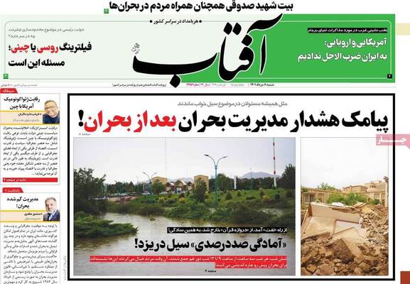 صفحه نخست روزنامههای شنبه ۸ مرداد ۱۴۰۱