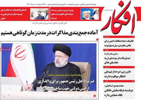 صفحه نخست روزنامههای دوشنبه ۱۰ مرداد ۱۴۰۱