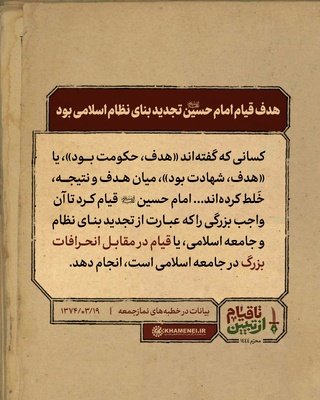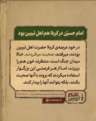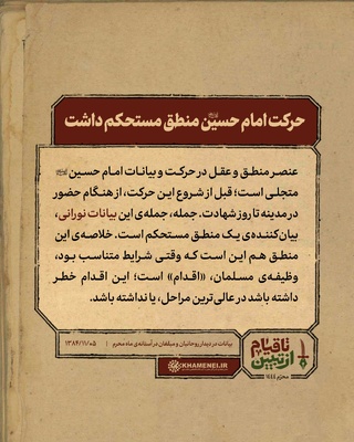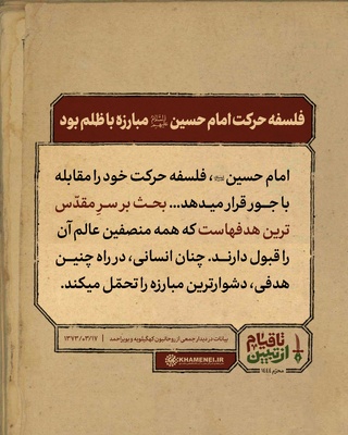 امام حسین (ع) فلسفه حرکت خود را مقابله با جور قرار میدهد... بحث بر سر مقدسترین هدفهاست که همه منصفین عالم آن را قبول دارند. چنان انسانی، در راه چنین هدفی، دشوارترین مبارزه را تحمل میکند. [رهبر معظم انقلاب؛ ۱۳۷۳/۳/۱۷]به مناسبت فرا رسیدن عاشورای حسینی مجموعه فتوتیتر «از تبیین تا قیام» ارائه میشود.