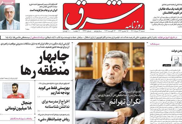 صفحه نخست روزنامههای شنبه 22 مرداد ۱۴۰۱