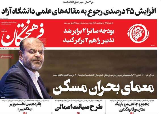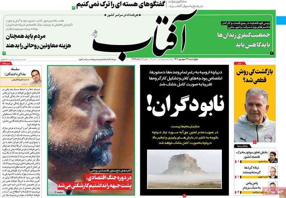 صفحه نخست روزنامههای چهارشنبه 16 شهریور 1401