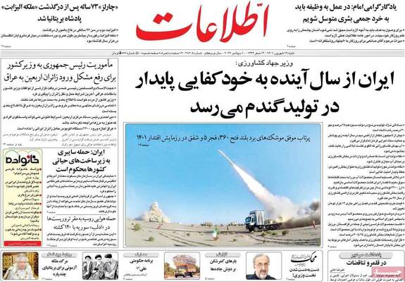 صفحه اول روزنامه های کشور