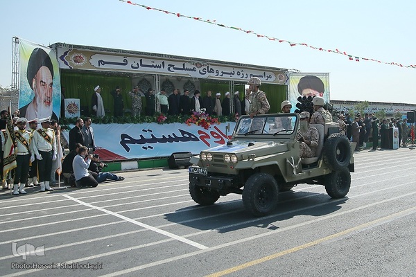 همزمان با آغاز هفته دفاع مقدس، رژه نیروهای مسلح قم با مشارکت یگانهای مختلف ارتش، سپاه و فراجا همراه با نمایش دستاوردهای نظامی برگزار شد.