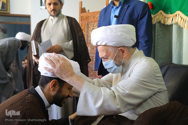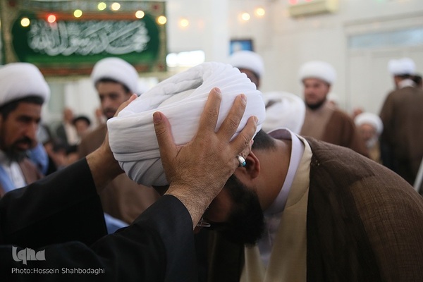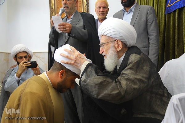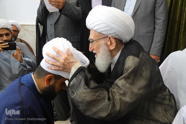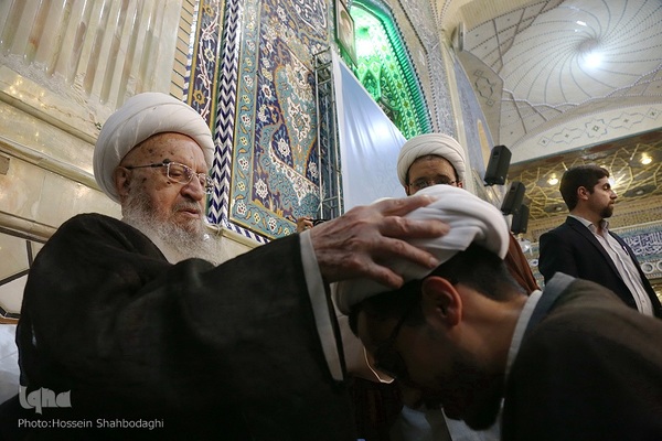همزمان با فرخنده میلاد پیامبر اکرم(ص) صبح امروز ۲۲ مهرماه، مراسم عمامه گذاری طلاب حوزه علمیه قم در بیوت علما و مراجع قم برگزار شد.