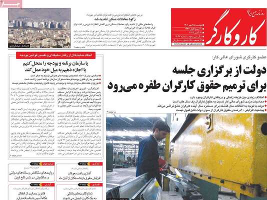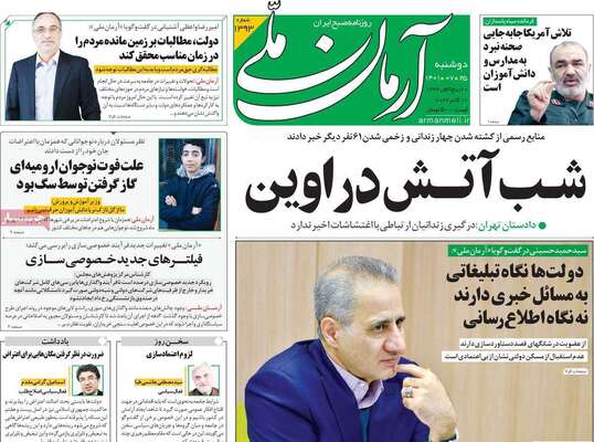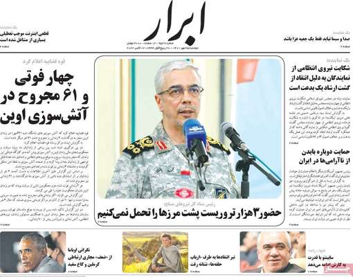 صفحه اول روزنامه های کشور
