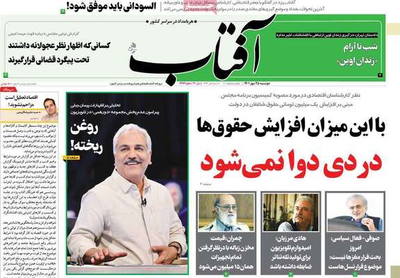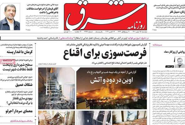 صفحه نخست روزنامههای دوشنبه ۲۵ مهر ۱۴۰۱