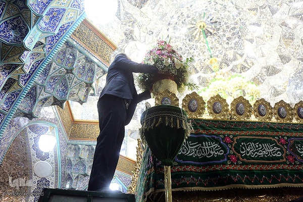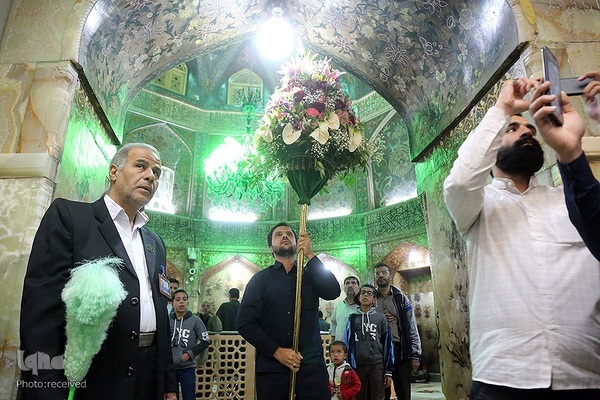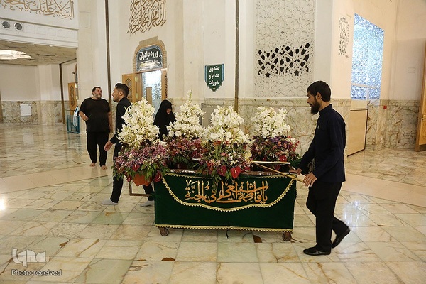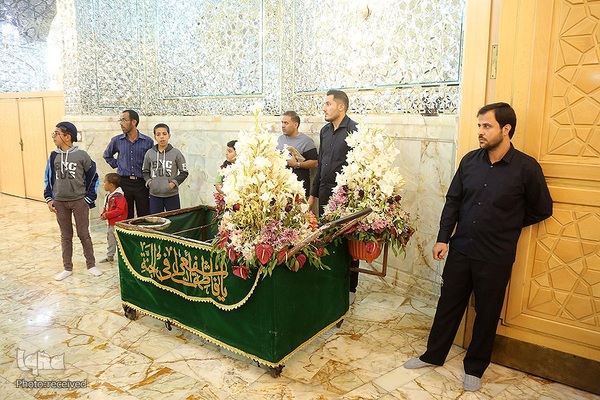 آیین گل آرایی ضریح مطهر حرم حضرت فاطمه معصومه (ع) در آستانه سالروز ورود ایشان به قم‎ صبح امروز (چهارشنبه 27 مهرماه) با حضور خادمان و استقبال زائران برگزار شد.