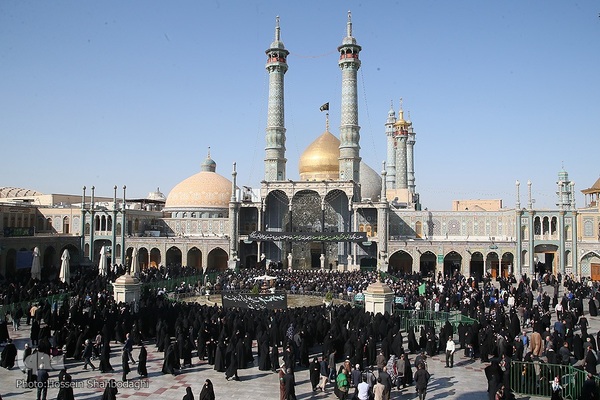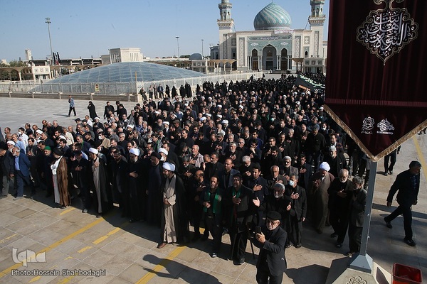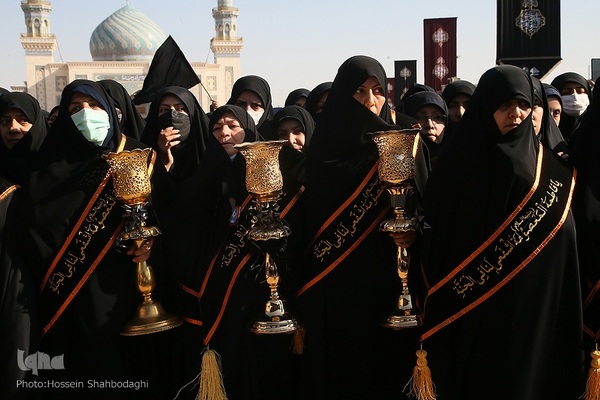 دسته عزای خادمان و زائران حرم بانوی کرامت در سالروز رحلت شهادت‌گونه حضرت معصومه(س) صبح امروز با همراهی گسترده مردم از میدان میر به سمت حرم مطهر برپا شد و مراسم عزاداری در صحن امام رضا(ع) با سخنرانی حجت‌الاسلام والمسلمین مؤمنی و مداحی سید علی حسینی‌نژاد برگزار شد.